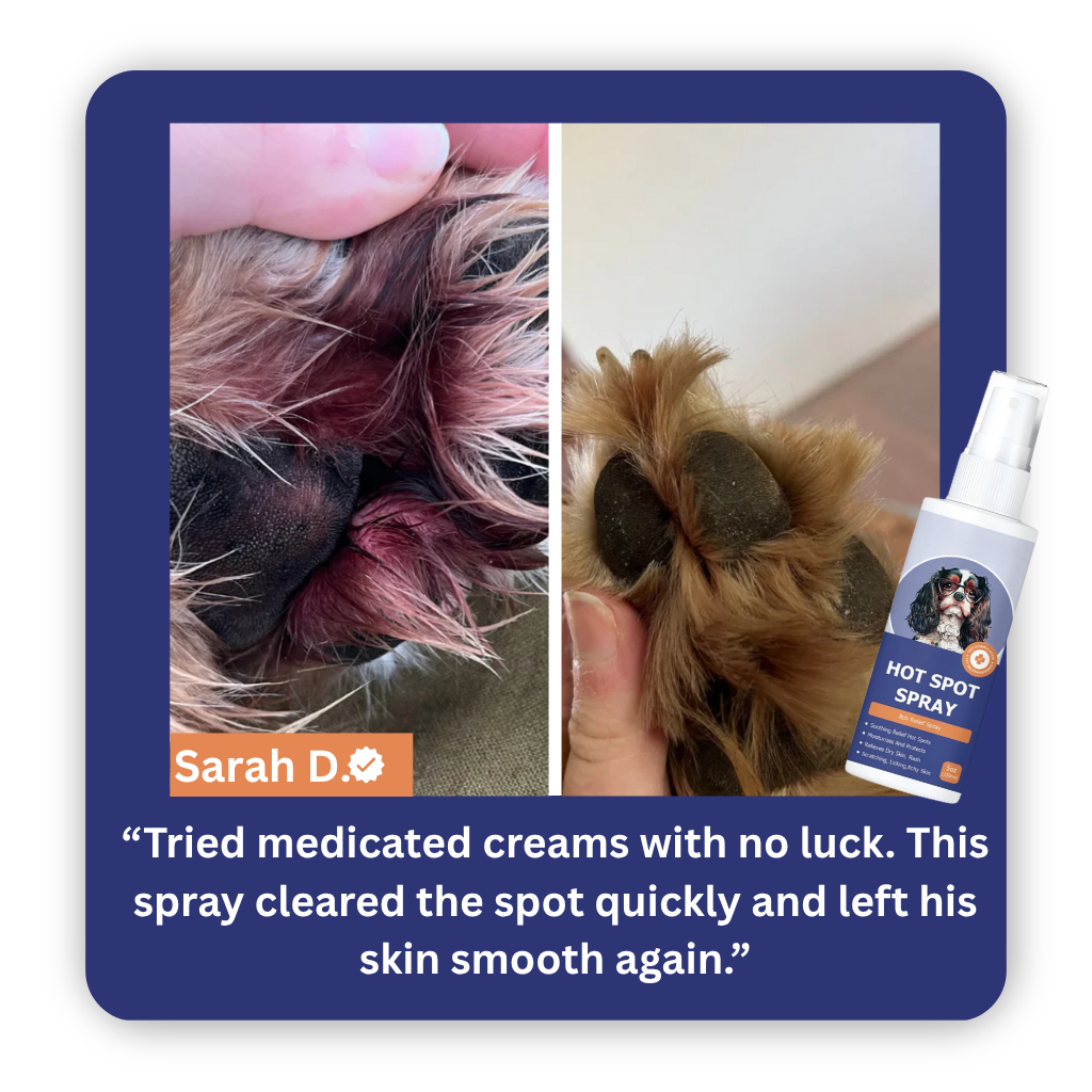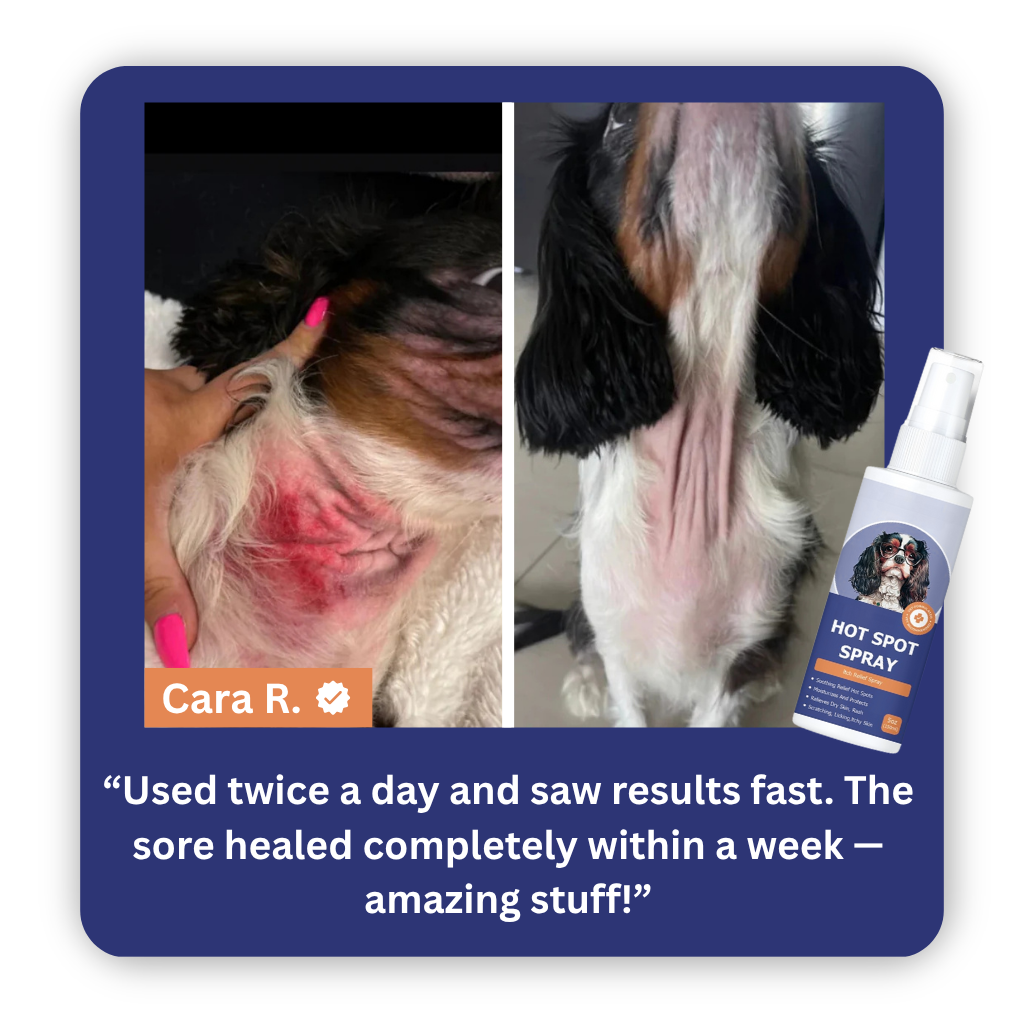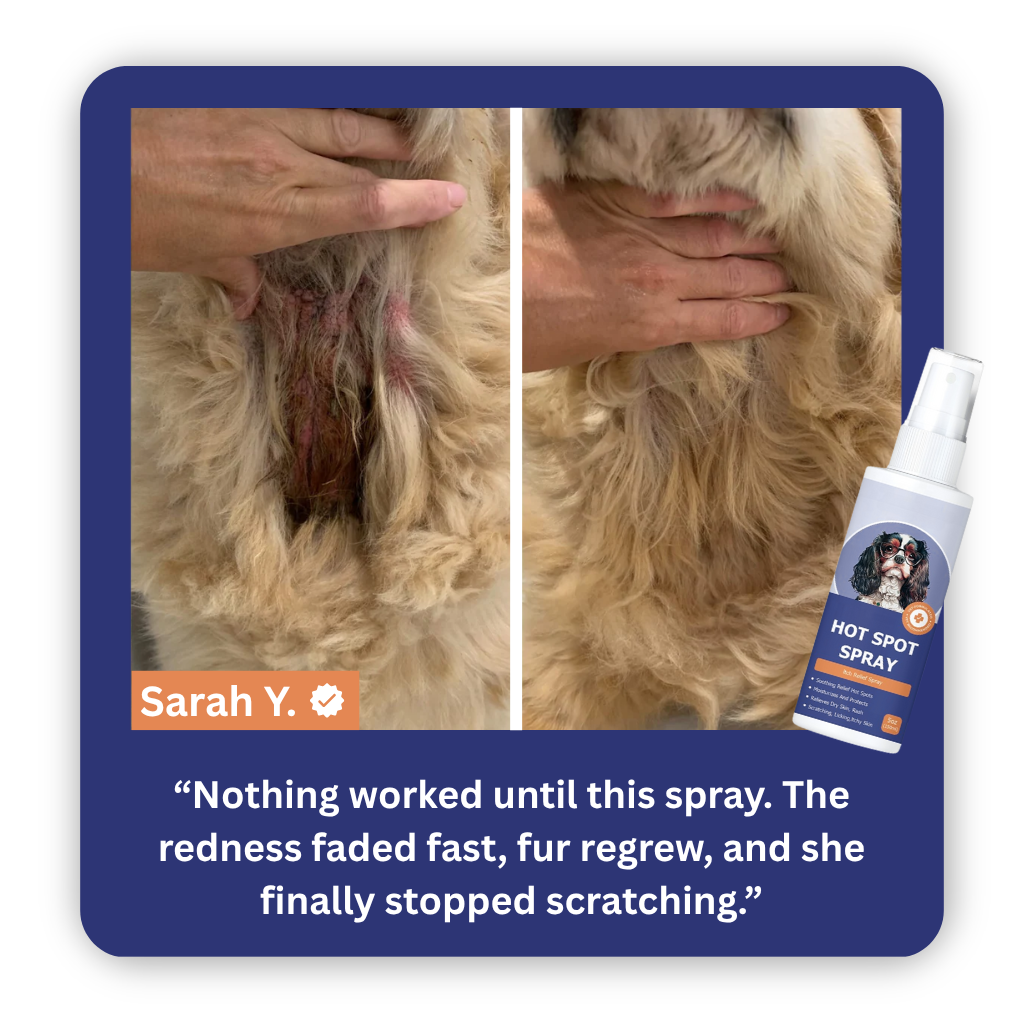 Most supplements can’t fix surface-level skin irritation. Our botanical-based spray targets the source directly—calming hot spots, redness, and itching fast so your dog finally finds real relief.